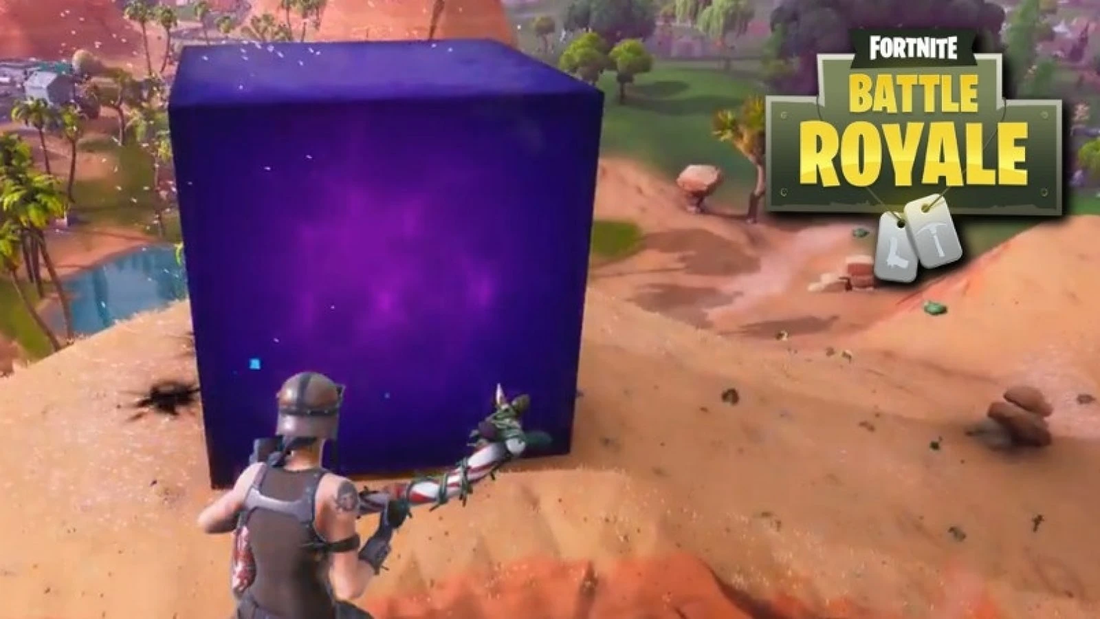 Un Cube mystérieux est apparu dans Fortnite : Battle Royale le Vendredi 24 Août 2018 dans le désert de Paradise Palms. En même temps que le Cube est apparu, la faille géante créée par la fusée dans le ciel a disparu. Depuis le 28 Août, le Cube a généré un champ anti-gravitationnel (modéré) autour de celui-ci. De plus, sa base est devenue rose. Le 30 août il s’est encore déplacé et un des signes sur le cube est gravé dans le sol. Il semblerait qu'il se dirige vers Loot Lake, d'après des fichiers dataminés. En effet, le Cube se dirigea vers Loot Lake et "fondit" au contact de l'eau, rendant Loot Lake de la même matière que le Cube. Au lancement de la Saison 6, on a pu voir que le Cube s'était reformé sous l'Ile Volante. L'Ile se mit a faire le tour de l'île, au même endroits que les runes. Revenue à Loot Lake, l'île explosa et le Cube gravitait au milieu des morceaux de l'île. Au bout d'un certain moment, il se mit à se vider de son Rose en gouttes qui tombaient sous l'île toutes les heures. Il explosa en Novembre. Il commença d'abord à tourner sur lui-même, de plus en plus vite, et à blanchir. Il explosa et toute la Map fut téléportée dans un monde parallèle. Une fois revenu, le Cube avait été fractionné en 7 morceaux.