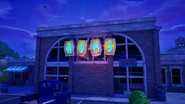 - A small camp appeared on a building in Tilted Towers with signs with a UFO drawing and text that read "