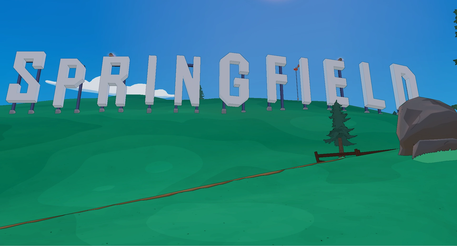 The Springfield Sign is a Landmark in Fortnite: Battle Royale that was added in Chapter 6: Mini Season 2 with the Springfield Island . The Springfield Sign consists of giant letters that spell out "SPRINGFIELD" on the side of a mountain.
